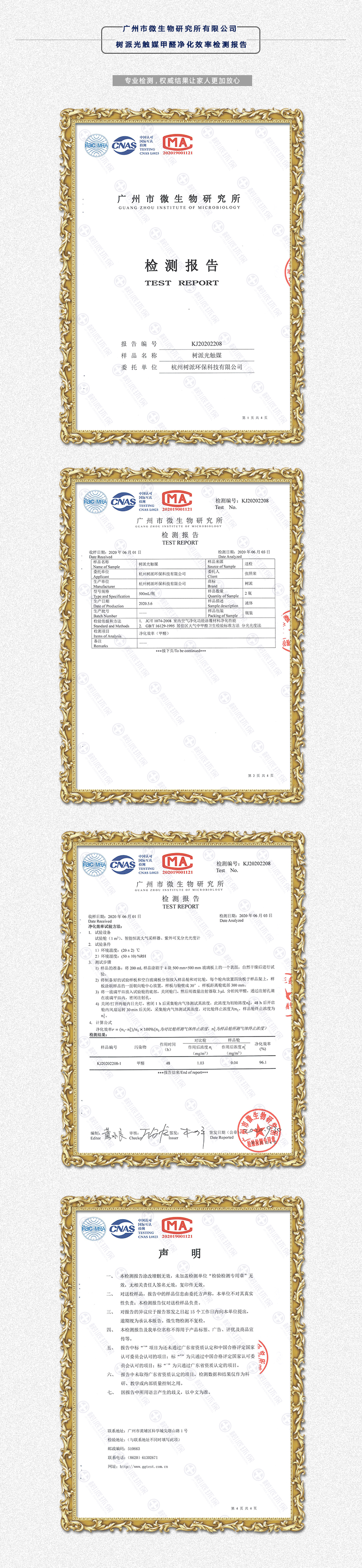 树派光触媒甲醛净化效率检测报告
